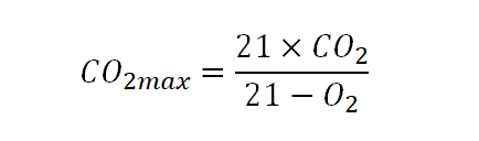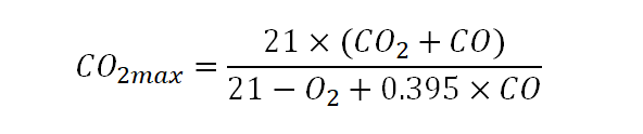 CO2max(%) = [21 X (CO2 + CO)] / [21 - O2 + 0.395 X CO]
